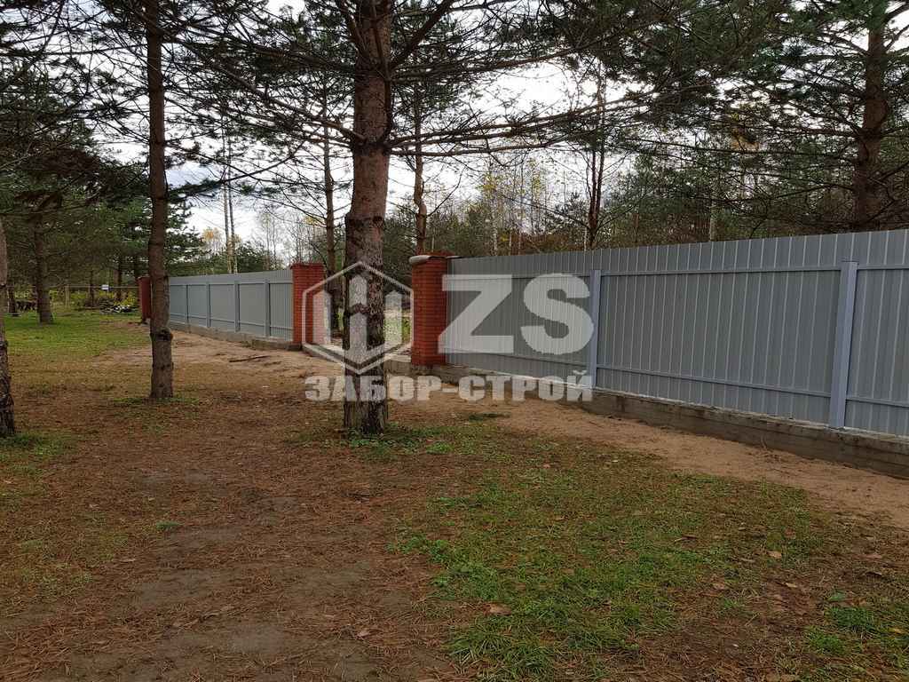 - Забор на ленточном фундаменте из профнастила 65 метров