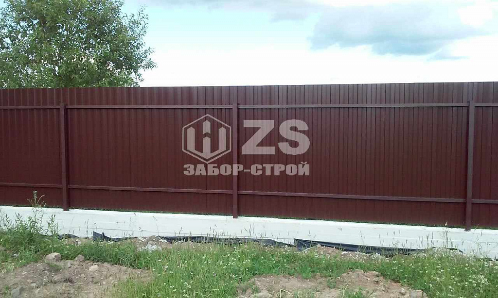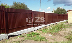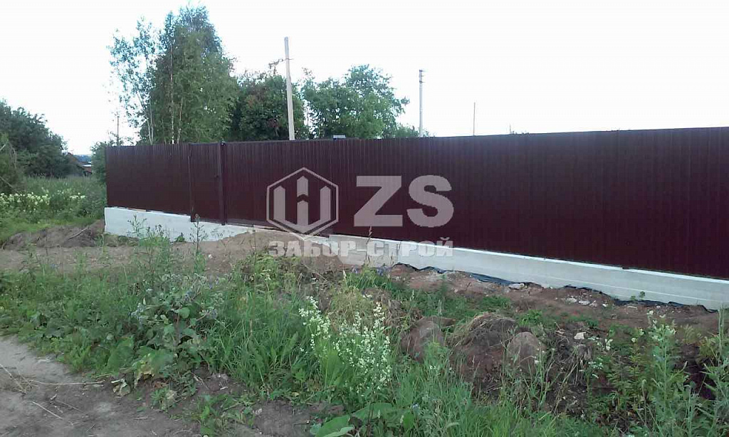 - Забор на ленточном фундаменте из профнастила 70 метров